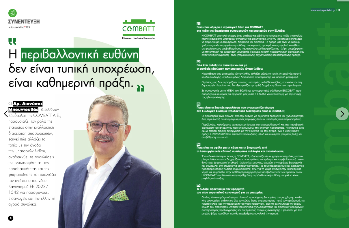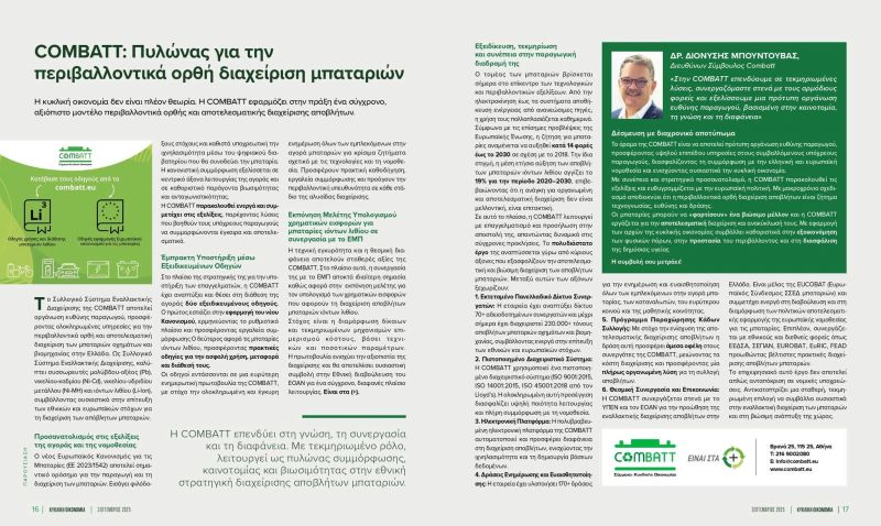 Στο ΒΗΜΑ της Κυριακής, η COMBATT παρουσιάζει το πολυδιάστατο έργο της για την αποτελεσματική και περιβαλλοντικά ορθή διαχείριση αποβλήτων μπαταριών στην Ελλάδα: