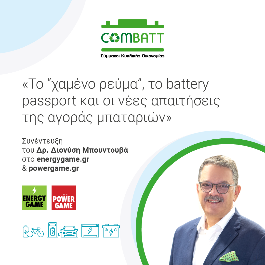 Η συμμετοχή της COMBATT S.A. στο Charging & Battery Summit & Expo 2025 ολοκληρώθηκε με επιτυχία, επιβεβαιώνοντας τον ενεργό ρόλο της εταιρείας στον διάλογο γύρω από τις κανονιστικές εξελίξεις, τις τεχνολογικές προκλήσεις και τις στρατηγικές απαιτήσεις της αγοράς μπαταριών. Η παρουσία μας στη διοργάνωση ενίσχυσε την ανταλλαγή τεχνογνωσίας και ανέδειξε την ανάγκη για συνεχή προώθηση πρακτικών που διασφαλίζουν την περιβαλλοντικά ορθή και αποτελεσματική διαχείριση των μπαταριών σε όλο τον κύκλο ζωής τους.